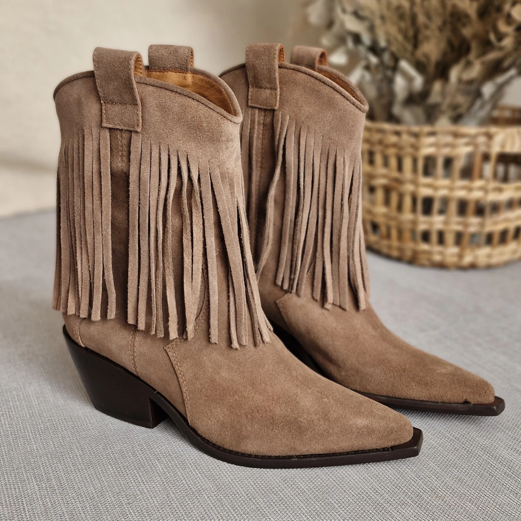 MATERIAL: CUERO GAMUZA POR FUERA Y POR DENTRO CUERO VACUNO.