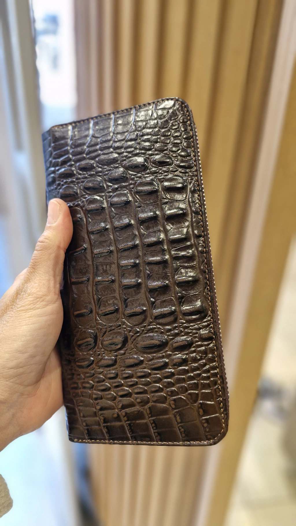Billetera CANOPLAS de cuero, diseñada para quienes valoran la elegancia y la funcionalidad. Cuenta con un cierre metalizado que le aporta un toque sofisticado y se abre completamente, brindándote máxima comodidad y facilidad para organizar tus tarjetas y billetes.