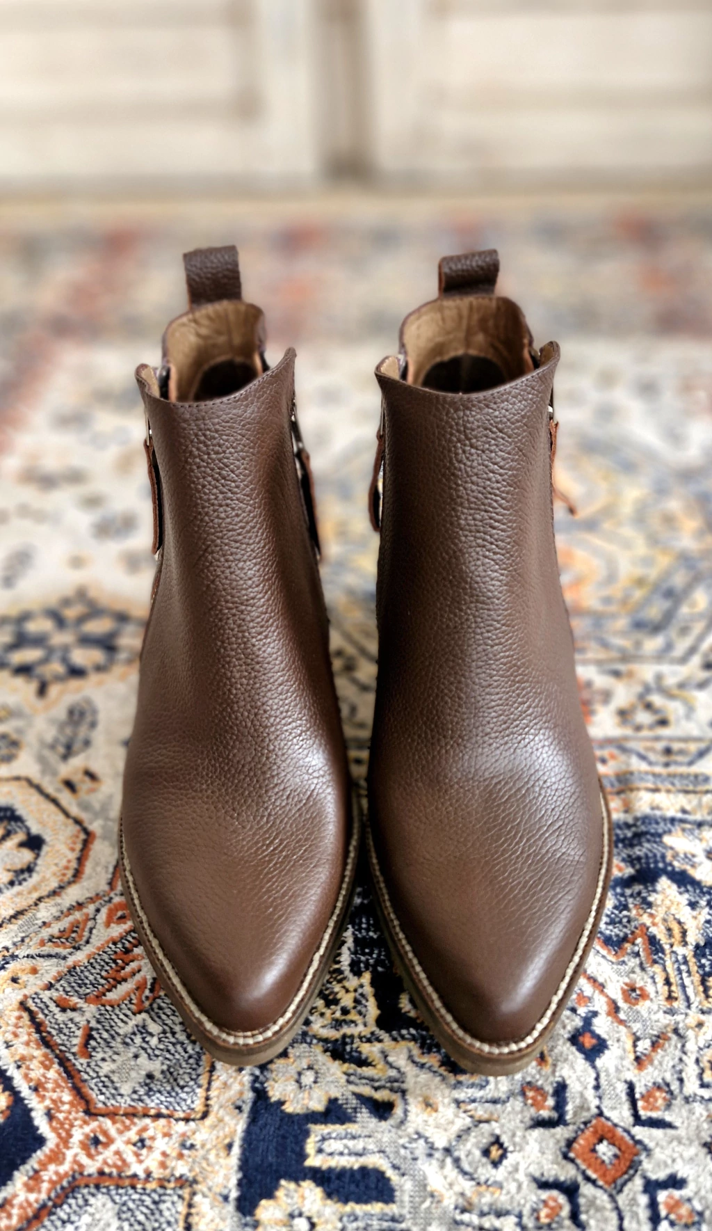 BOTINETA EN PUNTA, CON CIERRE EN LOS COSTADOS. DE CUERO POR DENTRO Y POR FUERA. SUPER BLANDITA Y CÒMODA.